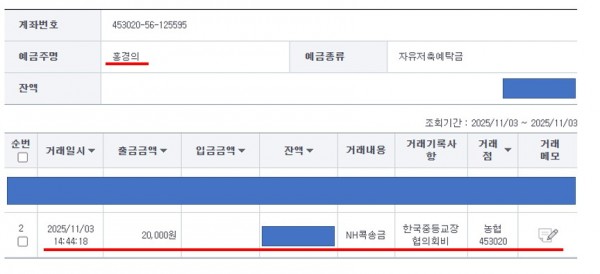 11월 3일 입금(20,000원) 완료 했는데, "입금대기"로 나옵니다.
